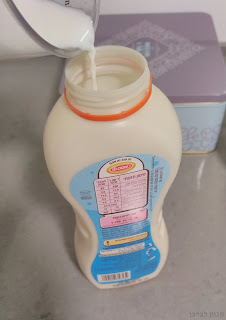בבקבוק יש אבקה מוכנה, צריך רק להוסיף כוס חלב, לערבב טוב טוב (לשקשק) ולשפוך מנה מנה למחבת.